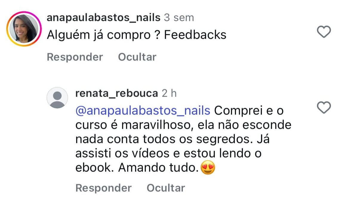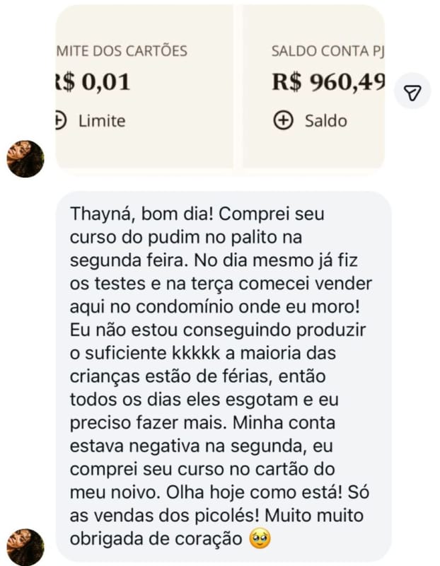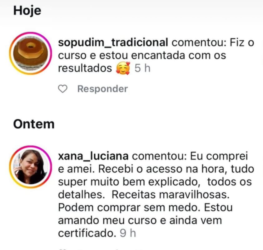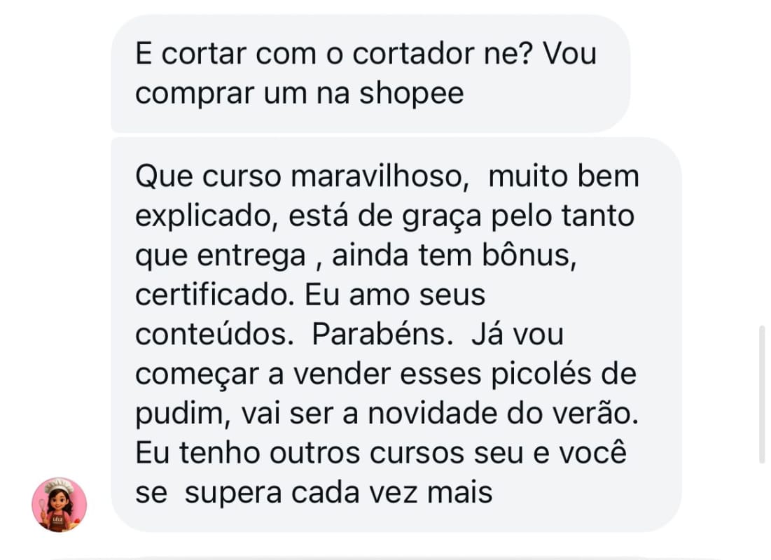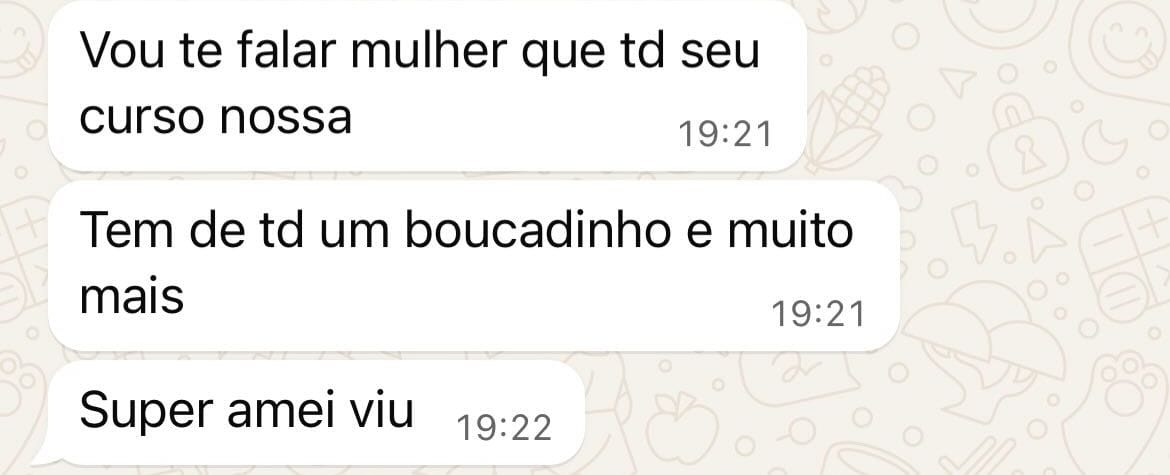 ESSES SÃO APENAS ALGUMAS DAS MENSAGENS QUE RECEBEMOS DAS NOSSAS ALUNAS E ALUNOS QUE ADQUIRIRAM E JÁ ESTÃO PRODUZINDO!