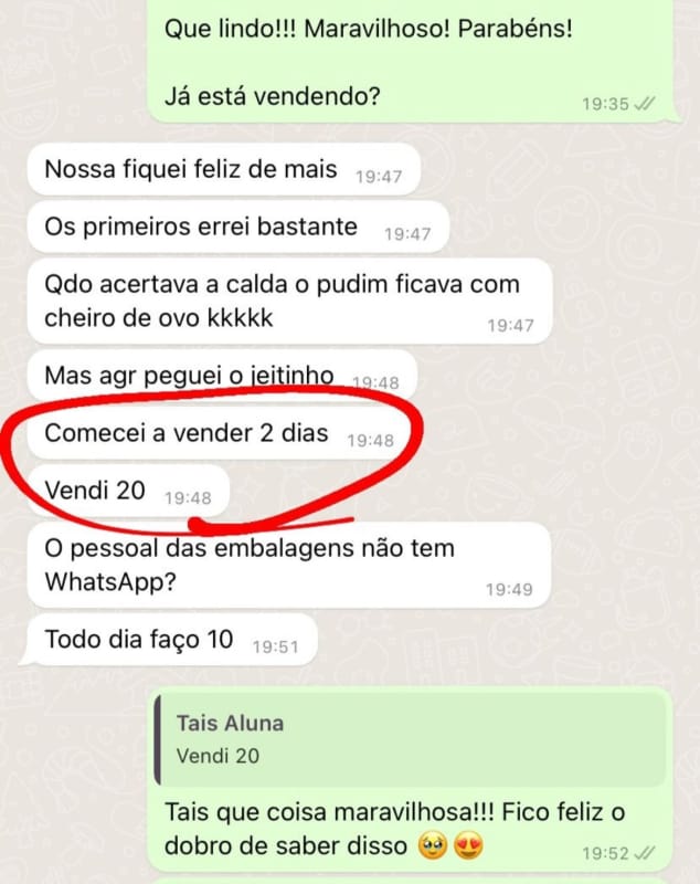 ✅Fiz mais de R$100.000,00 de faturamento líquido em um ano com a venda de doces artesanais.