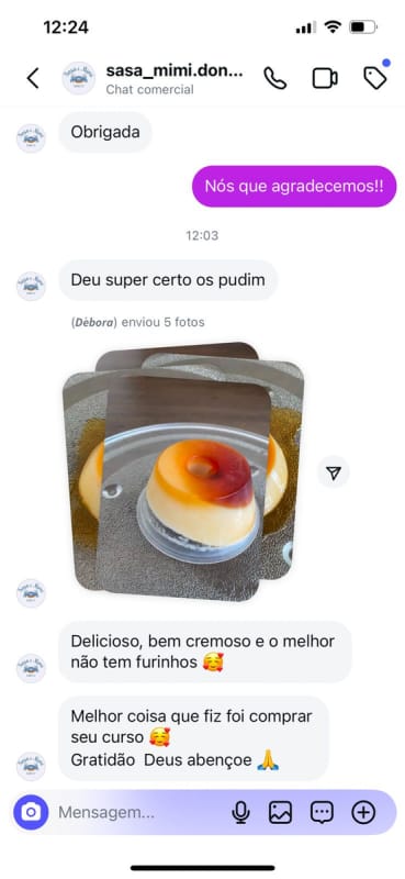 Experimente agora o curso “O PUDIM PERFEITO 2.0” sem riscos! Você tem 7 dias para assistir, ler, testar e implementar o meu método tirar as suas próprias conclusões.