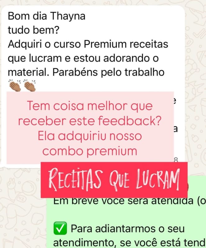 Experimente agora nossa apostila exclusiva “RECEITAS QUE LUCRAM – EDIÇÃO COMPLETA” sem riscos! Você tem 7 dias para ler, testar e implementar o meu método tirar as suas próprias conclusões.